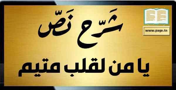 شرح نص يا من لقلب متيم محور شعر الغزل تحليل شرح نصوص اولى ثانوي يندرج ضمن المحور الاول